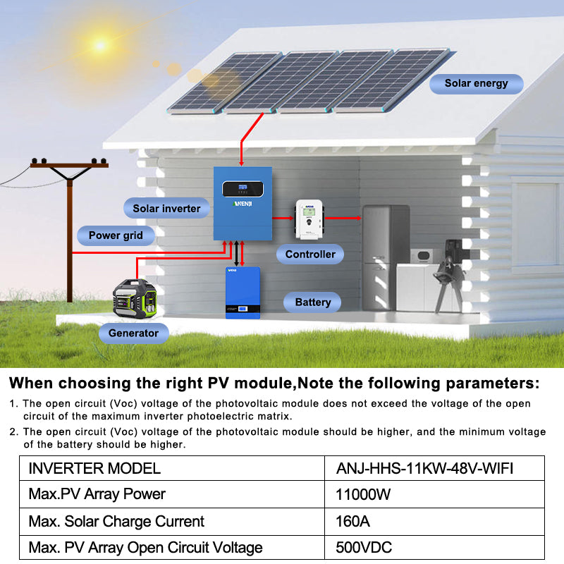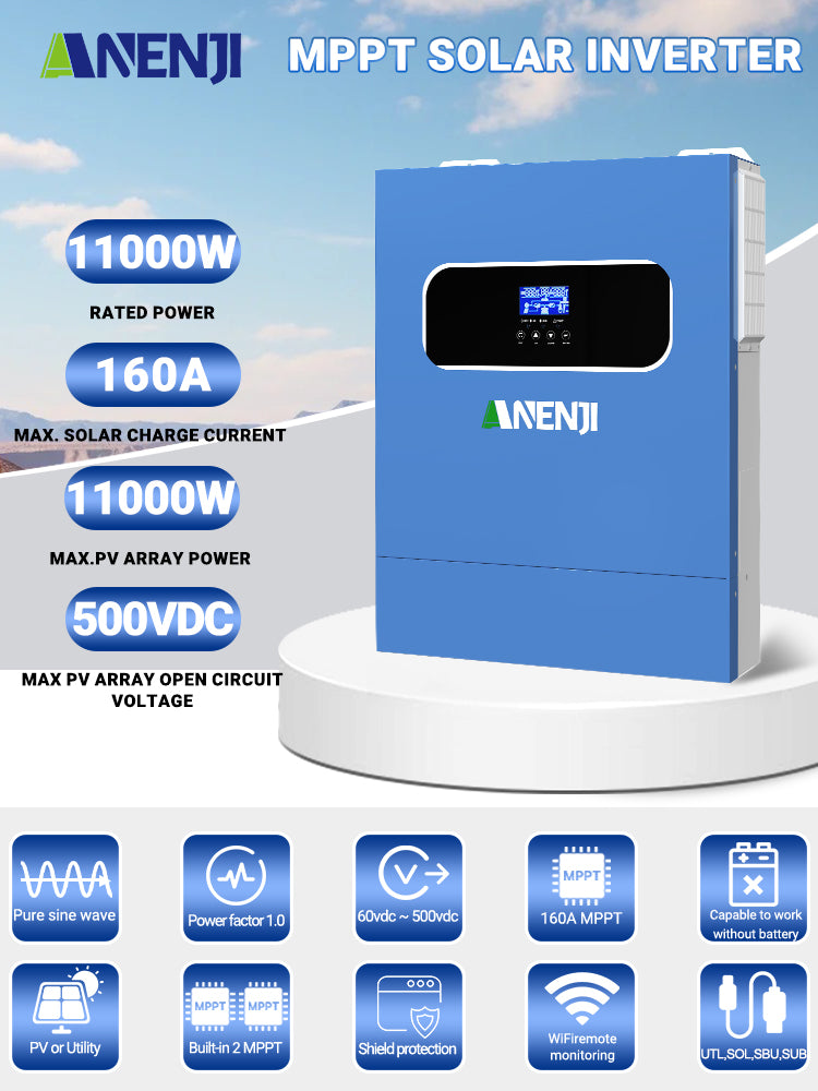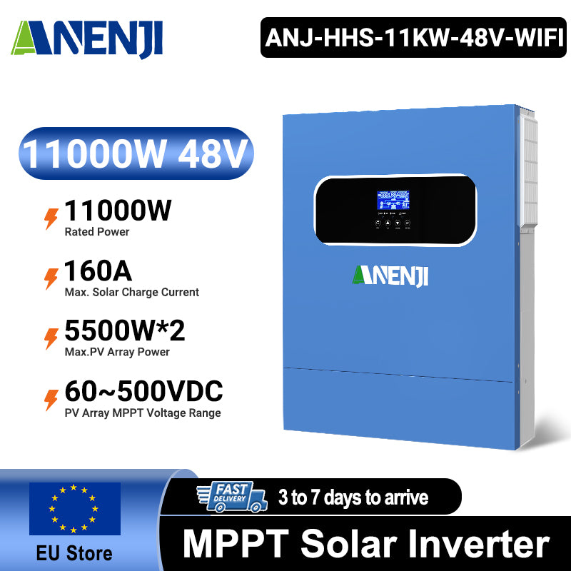 ANENJI 11KW 48V Hybrid Solar Inverter Pure Sine Wave is now available at the same price as the 10.2kW hybrid inverter, but with more powerful features. No need to hesitate—if you have a demand for a 10.2kW hybrid inverter, this 11kW Hybrid inverter is the perfect choice. It provides efficient and intelligent energy solutions for your home and commercial facilities, offering enhanced functionality and great value at the same price.